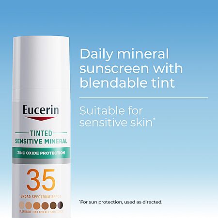 - HSA ELIGIBLE/FSA ELIGIBLE SUNSCREEN: Includes one 1.7 fluid ounce bottle of Eucerin Sun Tinted Mineral Face Sunscreen Lotion SPF 35