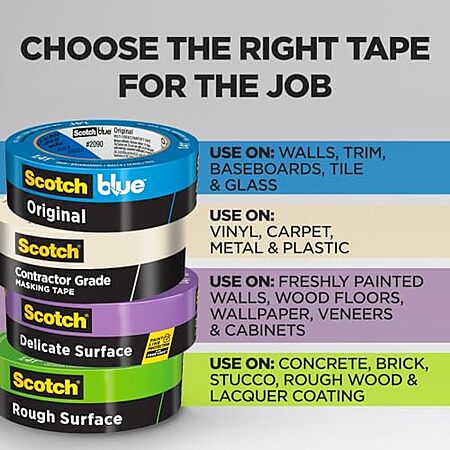 $6.68 | 6-Rolls Scotch Contractor Grade Masking Tape, 1 Inch Wide (0.94 in. x 60.1 Yds) at Amazon