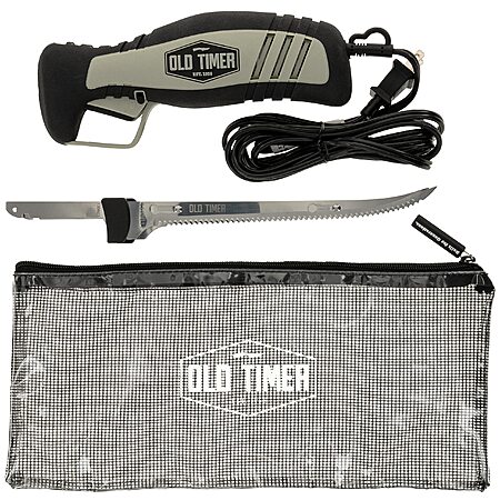 Model: Old Timer 110V Electric Fillet Knife with 8in Fully Serrated Stainless-Steel Blade, Trigger Lock, Classic Fillet Knife Cut, 8ft Cord, and Self Draining Carry Case for Fishing, Filleting, and Outdoors
