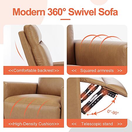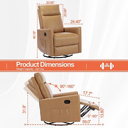 - 360° Swivel & Multi-Angle Recline:This nursery rocking chair offers 360° swivel, a backrest tilt from 95° to 160°, and a footrest adjustable from 0° to 90°, perfect for various relaxation needs.