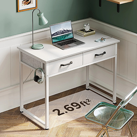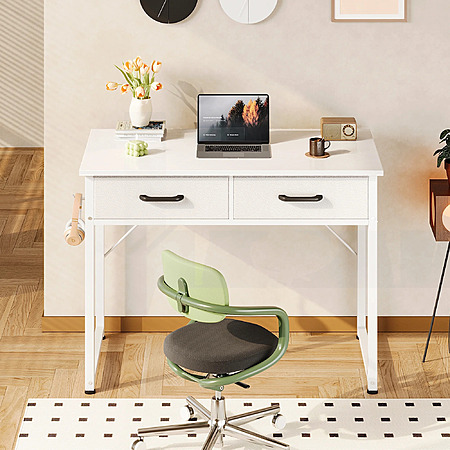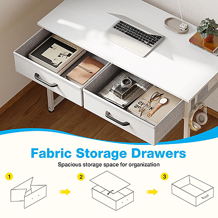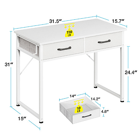 Casacomoda 32 Inch Writing Desk with 2 Fabric Drawers (White)