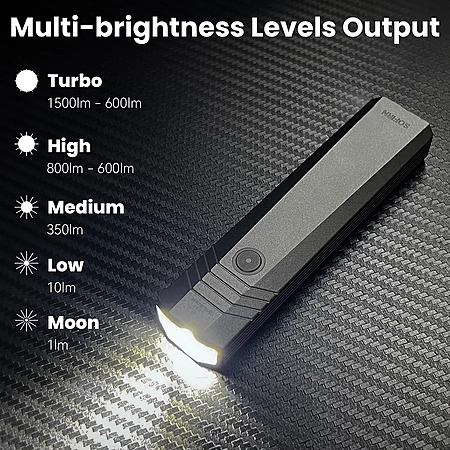 • 5 brightness levels (moonlight, low, med, high, turbo)