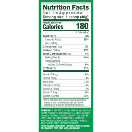 - 25 grams of plant-based protein per serving