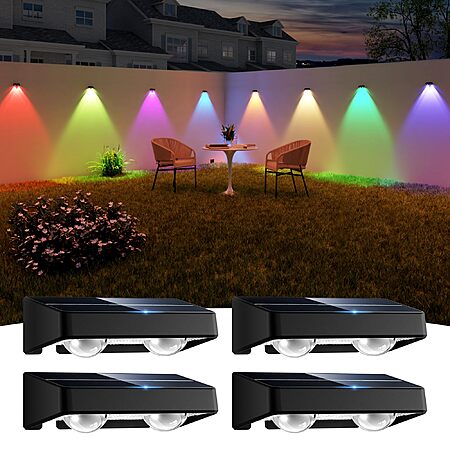 Solar Fence Lights Outdoor, 4 Pack Color Changing Fence Lights $13.19 + Free Shipping w/ Prime at Amazon
