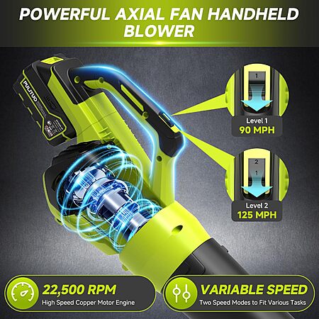 PULITUO Leaf Blower Cordless, 500CFM/ 125MPH 2X 4.0 Batteries and Fast Charger $38.49 w/ Free Shipping at Amazon