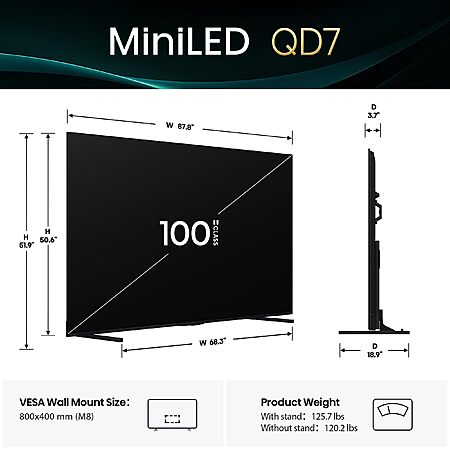 Model: Hisense 100" Class QD7 Series Mini-LED 4K UHD Smart Fire TV (100QD7QF, 2025 Model) - QLED, 144hz, HDR10+, Dolby Vision, Dolby Atmos, Game Mode Pro, ALLM, Alexa Built in with Voice Remote, Black