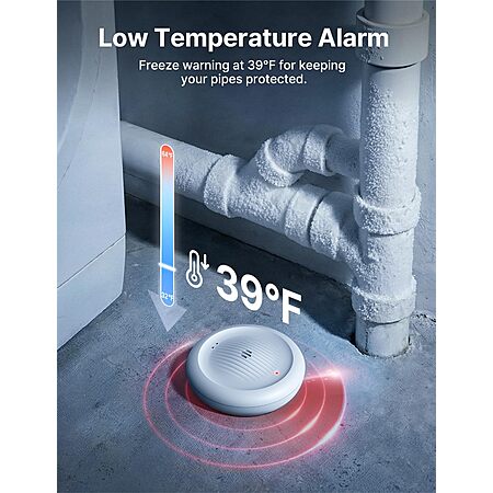 - Added Freeze Protection: In addition to leak detection, this sensor tracks temperature and alerts you at 39 °F (4 °C), a feature many base station-based systems don't include, helping you take action before pipes freeze and burst