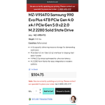 Refurbished MZ-V9S4T0 Samsung 990 Evo Plus 4TB PCIe Gen 4.0 x4 / PCIe Gen 5.0 x2 2.0 M.2 2280 Solid State Drive - $305