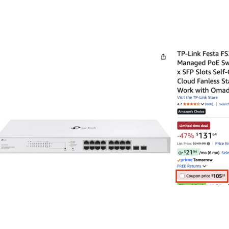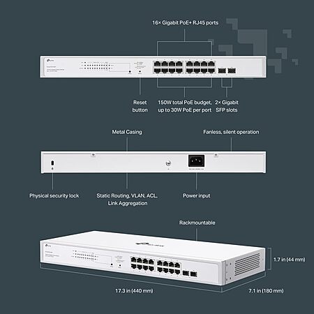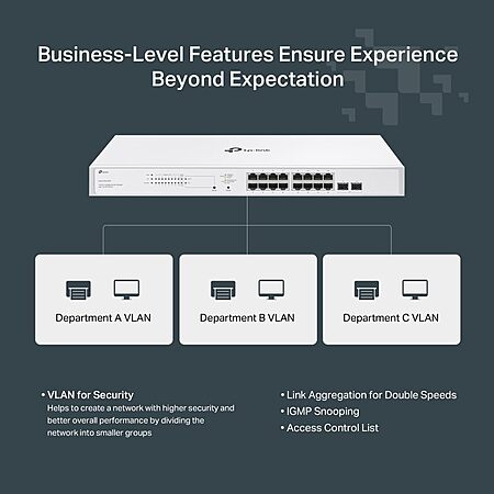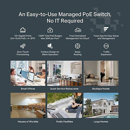 YMMV TP-Link Festa FS318GP 18 Port Gigabit Smart Managed PoE Switch 16 PoE+ Port @150W, 4 x SFP Slots Self-Organizing Network Free Cloud Fanless Static Routing $105.31 AC