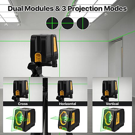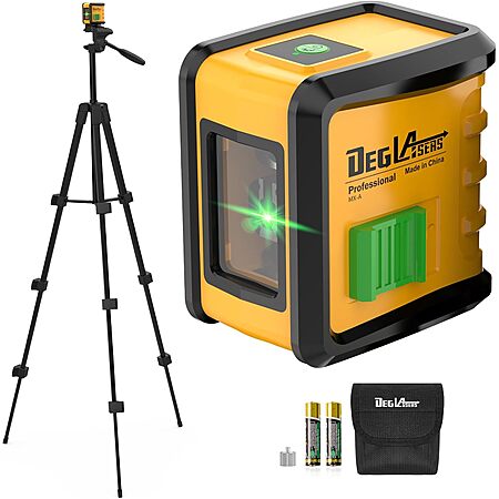 Model: Laser Level with Tripod,DEGLASERS 100Ft Green Cross Line Self Leveling laser level,Dual-Module,Selectable Laser Lines With Rechargeable Battery for Picture Hanging,Tile,Construction Indoor Project