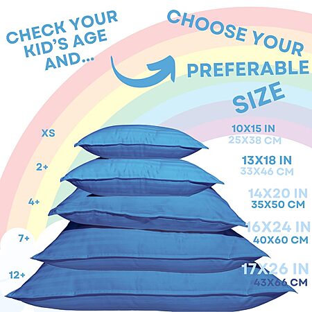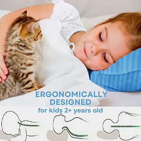 kinder Fluff Children Pillows (2-Pack) 17x26in– 100% 300T Soft Cotton & Down Alternative, Blue - $12.99