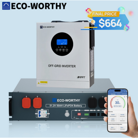 ECO-WORTHY 2560Wh 48V 50Ah Lithium Battery+5kw Solar Inverter For Home Off-grid (Free Ship) $664