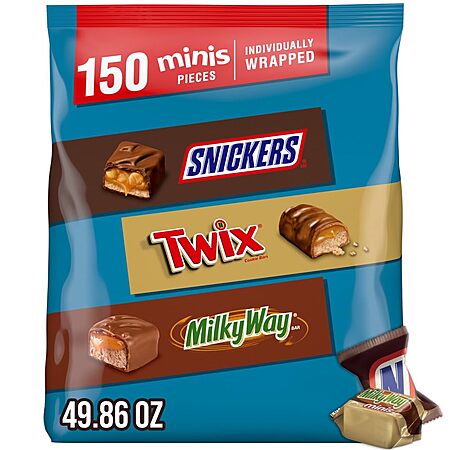 Model: SNICKERS, TWIX, & MILKY WAY Minis Chocolate Candy Bars Variety Pack, 150 Ct Bulk Bag