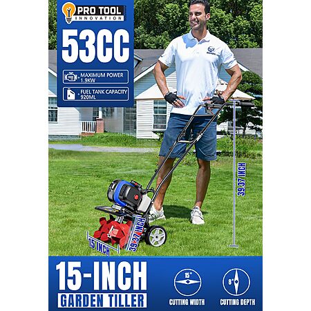 | Product Description: | This 53CC gas-powered cultivator is designed for effortless soil tilling in gardens, lawns, and small farms. Its 1.9kW (2.6HP) engine delivers strong performance, while the adjustable booster rod allows for customizable tilling depth. The ergonomic soft-grip handle ensures comfortable operation, and detachable push bars make storage and transport easy. Equipped with soft rubber wheels for smooth maneuverability and a dual-layer air filter for engine protection, this cultivator is built for durability. Lightweight yet powerful, it’s perfect for preparing flower beds, vegetable patches, and compact fields. Get ready to transform your gardening experience with this easy-to-use, high-performance tiller! POWERFUL PERFORMANCE: Featuring a robust Wild Badger Power 53CC engine with a significant power output of 1.9kW for lag-free operation. EASY TO START: Easy start, start within 5 times by pulling the starter. CONVENIENT STORAGE: The detachable hand push bar enables convenient storage and transportation, adding to the product's user-friendly design. ENHANCED DURABILITY: Equipped with a soft wheel for a smoother user experience, and dual layers filter for cleaner engine operation, ensuring a longer product life for sustained performance. RELIABLE CUSTOMER SERVICE 3-YEAR WARRANTY: If you encounter any quality problems over the life cycle of our product, please contact us in time. Badger warrants this product against defects in material and workmanship for a period of three (3) years for home use and commercial use commencing on the date of original purchase and will, at its option, repair or replace, free of charge, any part found to be defective in material or workmanship. |