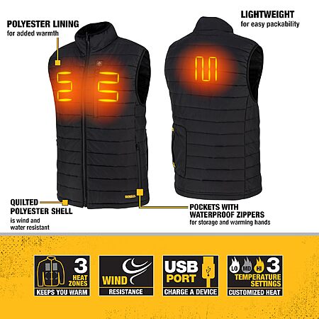 DEWALT DCHV095BD1 Cold Weather Men's Heated Puffer Vest Kit with Battery - Black, Size 3X $162.60