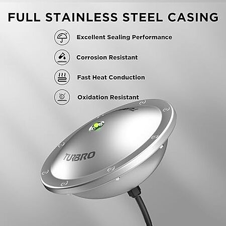 $59.99 | TURBRO Pond De-icer, Floating Pond Heater with 32.8 ft. UL Approved Cord, 400 Watts, PD400A, Silver at Amazon