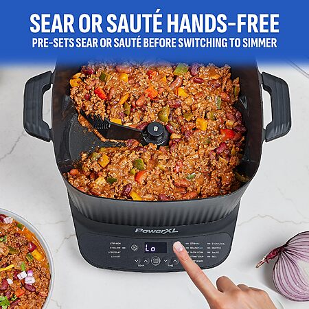 Model: STIRMAX PLUS 7.5 Qt Digital Multi-Cooker, Automatic Paddle to Stir and Shred, 9-in-1 Presets for Sauté, Sear, Includes Accessories & Cookbook.