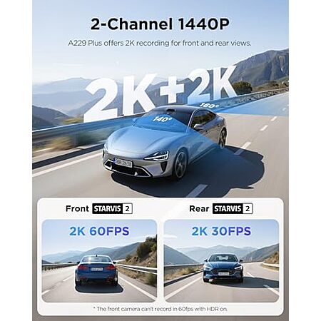 Model: VIOFO A229 Plus Dash Cam Front and Rear, Dual STARVIS 2 Sensors, 2 Channel HDR, 1440P+1440P Voice Control Car Dash Camera, 5GHz Wi-Fi, Support 512GB Max, Voice Control, Ultra-Precise GPS