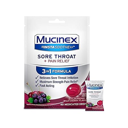 40-Count Mucinex Instasoothe Sore Throat Relief Lozenges (Elderberry & Wild Cherry) $2.49 + Free Shipping w/ Prime