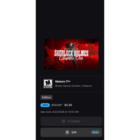 [Epic Games] Sherlock Holmes Chapter One Deluxe Edition $5.99