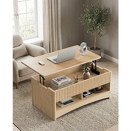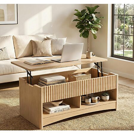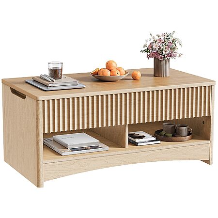 Amazon [amazon.com] has Marsail Lift Top Modern Fluted Coffee Table with Open & Hidden Storage (Natural Oak) on sale for $89.98. Shipping is free.