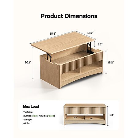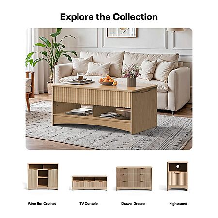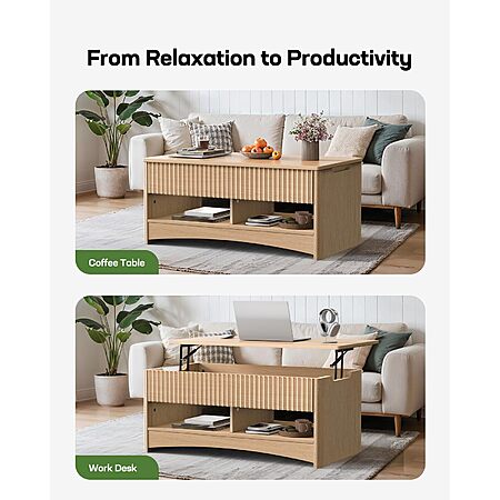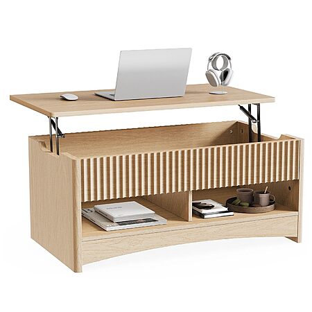 Marsail Lift Top Modern Fluted Coffee Table with Open & Hidden Storage (Natural Oak) $89.98 + Free Shipping