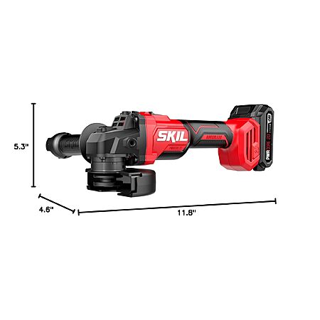 SKIL PWR CORE 20V Brushless 4-1/2 In. Angle Grinder Kit, includes 2.0Ah Battery and 20V Standard Charger $80 at Amazon