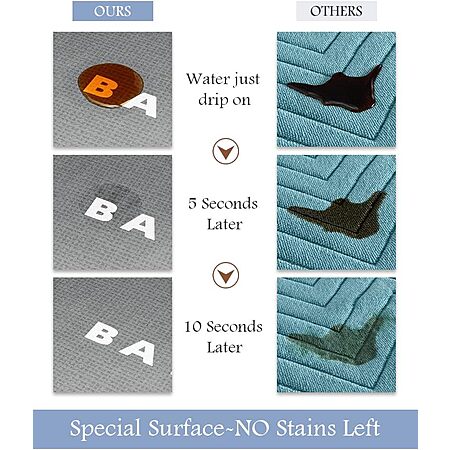 • Absorbent & Stain Resistant: Its specially engineered nano-porous smooth surface instantly absorbs dripping water, leaving no conspicuous watermarks or stains. Whether stepping out of the shower or washing your hands, you can trust this super absorbent bath mat to keep your space clean and safe.