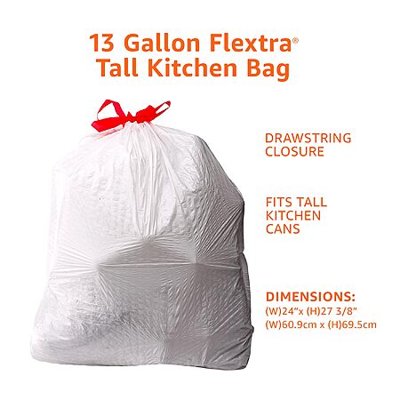 50-Count 13-Gal Amazon Basics Flextra Tall Kitchen Drawstring Trash Bags $6.97 w/ S&S + Free Shipping w/ Prime or on $35+