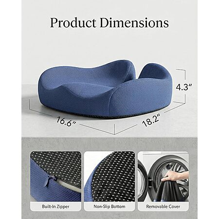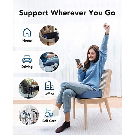 • High-Density Foam with Breathable Cover: Made from resilient, high-density memory foam, this office chair cushion retains its shape over time, offering steady support. The breathable cover allows for proper airflow, keeping you cool and comfortable. The cushion is designed with a non-slip bottom, ensuring it stays securely in place on any seat, whether it's a car seat cushion, office chair cushion, or wheelchair cushion.
