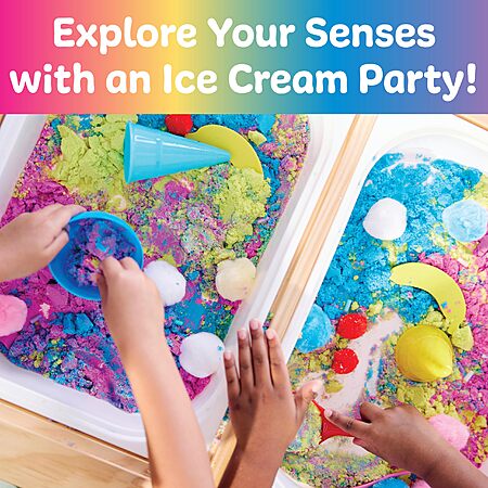- Included is an ice cream shop-themed sensory bin filler with three colors of sensory sand and additional sensory toys to engage children's senses.