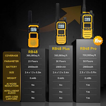 Retevis RB48 Heavy Duty Walkie Talkies, Waterproof Two Way Radio, Advanced Triple Proof & Floating, 2000 mAh, Emergency, 2 Way Radio Long Range for Job Site (4 Pack) Yellow $119.98