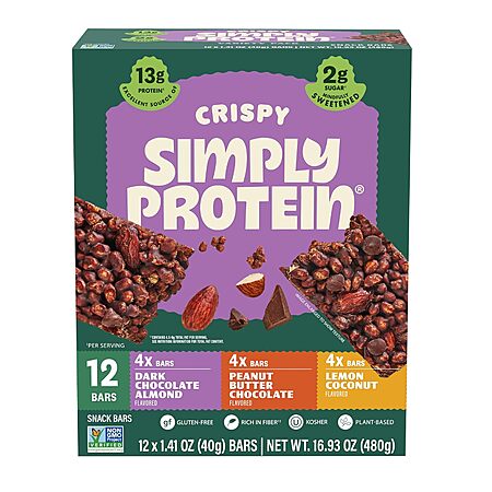 12-Count Simply Protein Crispy Vegan Protein Bars (3 Flavors) $11.96 w/ S&S + Free Shipping w/ Prime or on $35+