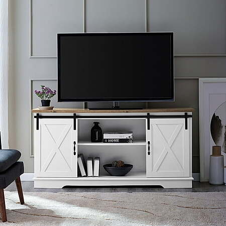 Walker Edison Sliding Farmhouse Barn Door TV Stand for TVs up to 65", Rustic Oak or white/reclaimed barnwood, $85.60, FS Walmart