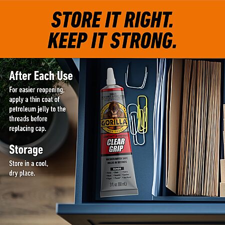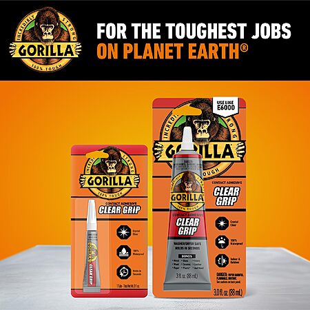 Model: Gorilla Clear Grip Waterproof Contact Adhesive, Fast-Setting, Waterproof, Flexible, Permanent Bond, 3 Ounce Tube, Crystal Clear (Pack of 3)
