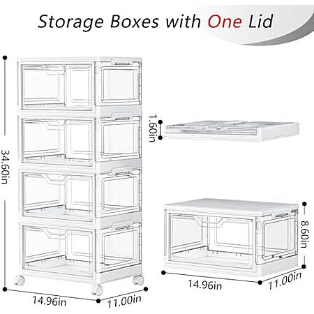 Model: SNSLXH Portable Clear Storage Bins with Lid & Wheels, 24QT Clear Storage Bins with Lid, 4-Tier Plastic Bins with Wheels, Stackable, Magnetic Doors, for Bedroom, Living Room, Office
