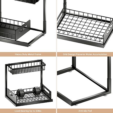 - 【Better Quality】 VUSIGN under sink storage is made of high quality steel, which can hold up to 50 lbs and is not easy to deform. Mesh construction prevents water accumulation; 2 pads are removable and washable.
