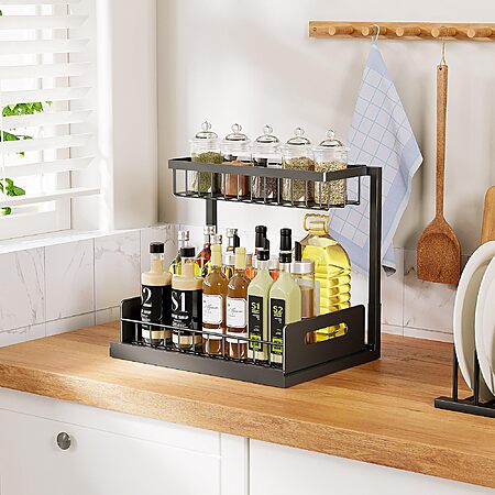 Amazon.com has VUSIGN Under Sink Organizers Storage, 2 Tier Under Cabinet Organizer Shelf, Pull Out Kitchen Bathroom Sink Organizer Storage Organization, 2 Pack Black on sale for $17.65.