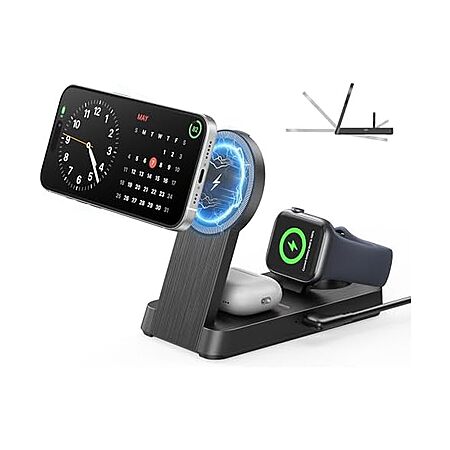 3 in 1 Magnetic Wireless for iPhone Charging Station: Foldable Portable Charger for iPhone 17-12 Pro Max & Apple Watch & AirPods, $7