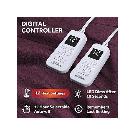 Sunbeam Royal Ultra Fleece Heated Electric Blanket King Size, 90" x 100" - $62.99 + free ship w/ Prime