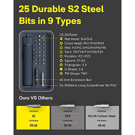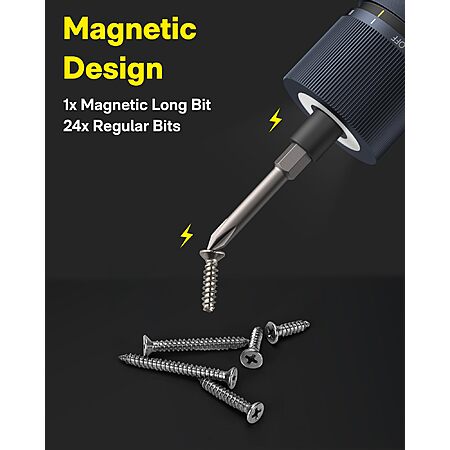 HOTO Electric Screwdriver Kit, Upgraded 1/4'' Hex 25 Bits, Magnetic Lid, Rechargeable Cordless Screwdriver, 1500mAh Battery $30