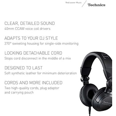 $149.99 | Technics Professional DJ Headphones with 40mm CCAW Voice Coil Drivers - EAH-DJ1200-K (Black) at Amazon