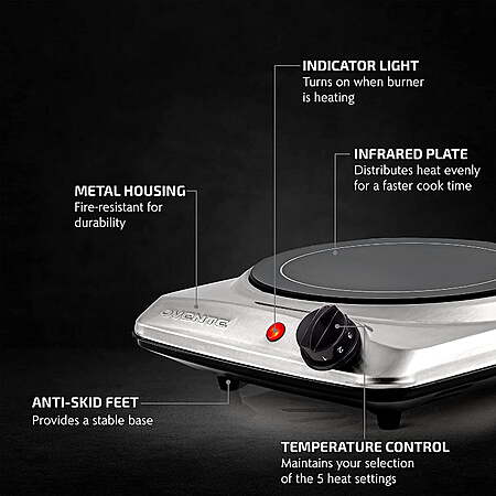 $17.17*:OVENTE 7 in. Countertop Infrared Single Burner, 1000W Electric Hot Plate,Silver BGI101S at Walmart.com