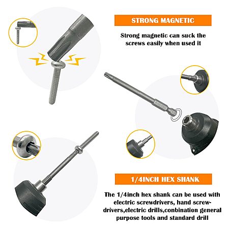 10PCS 6"/150mm T20 Torx Head Screwdriver Bit Set, 1/4 Inch Hex Shank with Quick Release Slot,S2 Steel Magnetic Security Tamper Proof Star 6 Point Screw Driver Kit Tools(TT20) $8