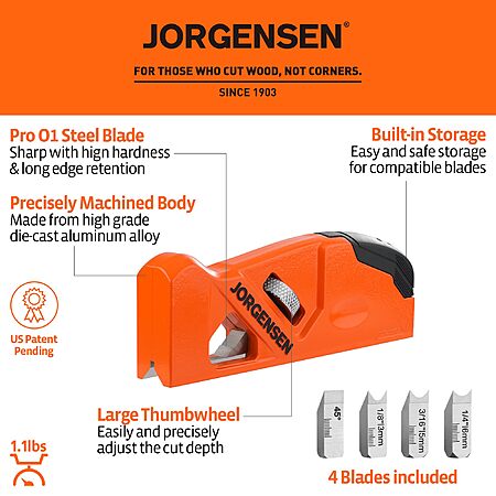 JORGENSEN Chamfer Plane, Edge Corner Plane with 4 Cutter Heads, Storage Space. YMMV - Coupon Price $39.96