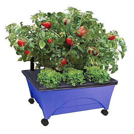 Model: Raised Bed Grow Box, Self Watering and Improved Aeration, Mobile Unit with Casters, Cobalt Blue