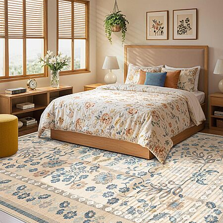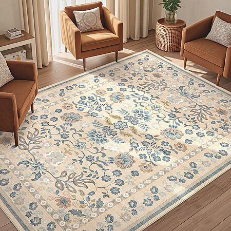 UERMEI 5x8 Area Rug Living Room Rugs - Washable Boho Vintage Floral - $49.99