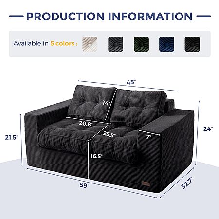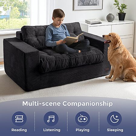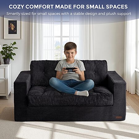 MAXYOYO Loveseat Sofa Couch, Upholstered Bean Bag Chair, Black - $148.98