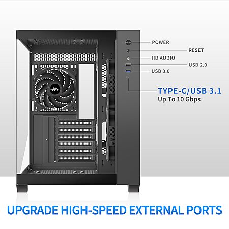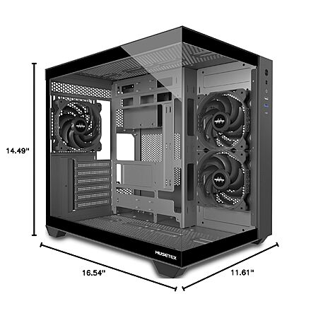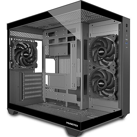 MUSETEX ATX PC Case, 3 x 120mm Fans Preinstalled, 360MM RAD Support, 270° Full View Tempered Glass Gaming PC Case with Type-C, Mid Tower ATX Computer Case, Black, Y6