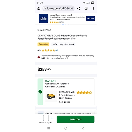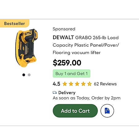 EDIT** Too hasty to post as the ad showed as a daily deal for me. The BOGO is that buying the Grabo at 259$ you get one free 20v battery.
